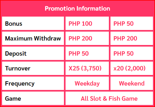 3. A deposit of PHP 50 will result in a credit of PHP 50 in the form of a bonus.