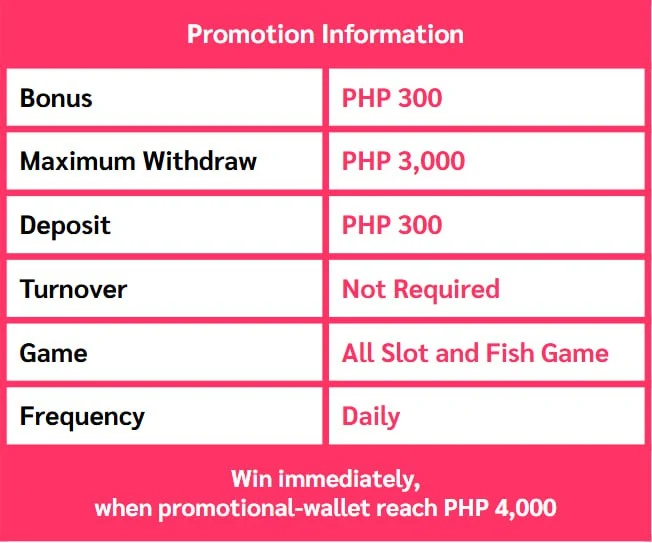 3. A deposit of PHP 300 will result in a credit of PHP 300 in the form of a bonus.