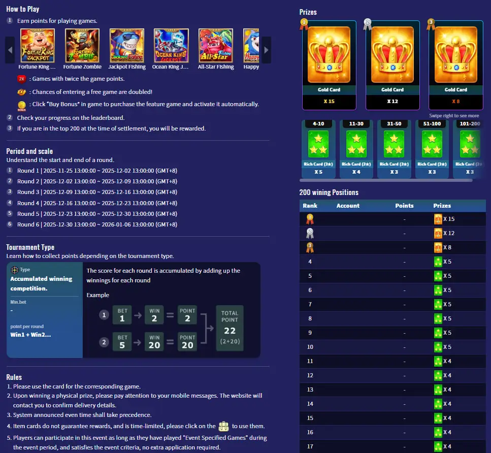 1. Participating Games types are Slot and Fishing Games of all Game Branch Only.